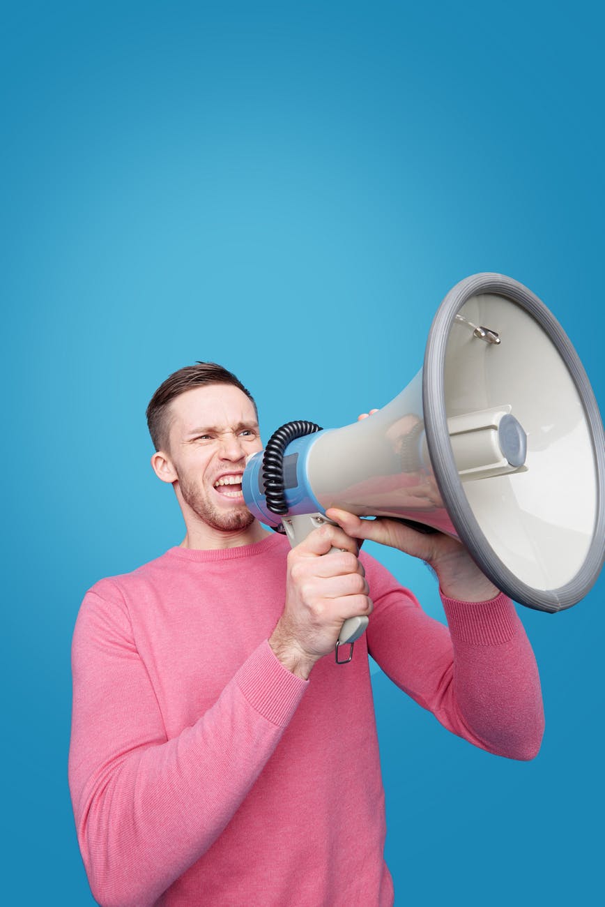 man talking on a megaphone
