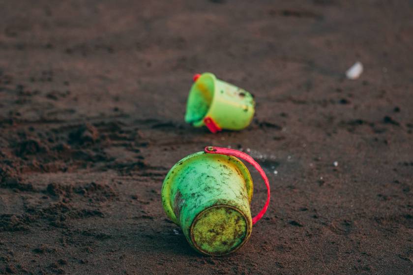 two green pails on ground